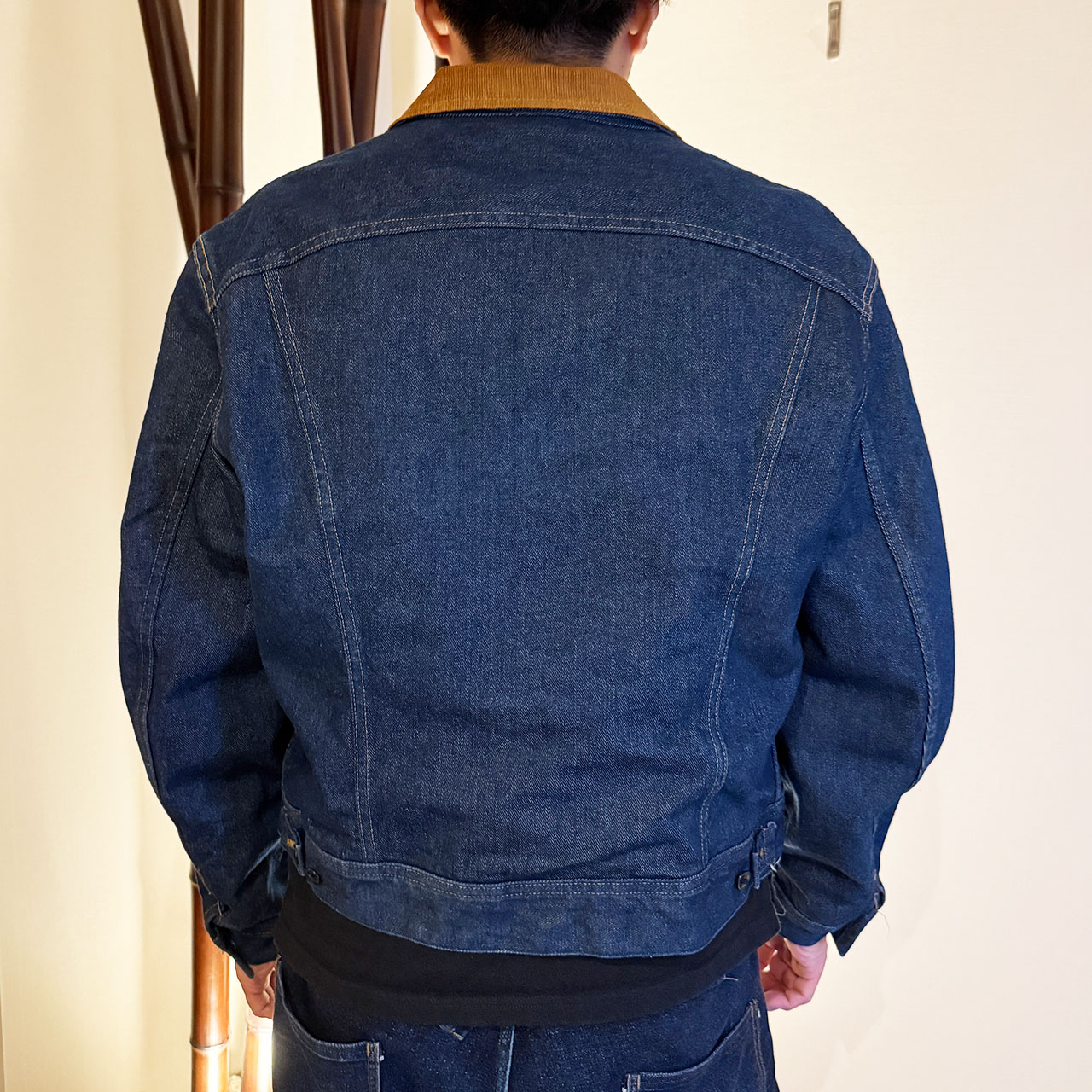 • •コーデュロイの襟: 襟部分がコーデュロイ生地になっており、デザインのアクセン